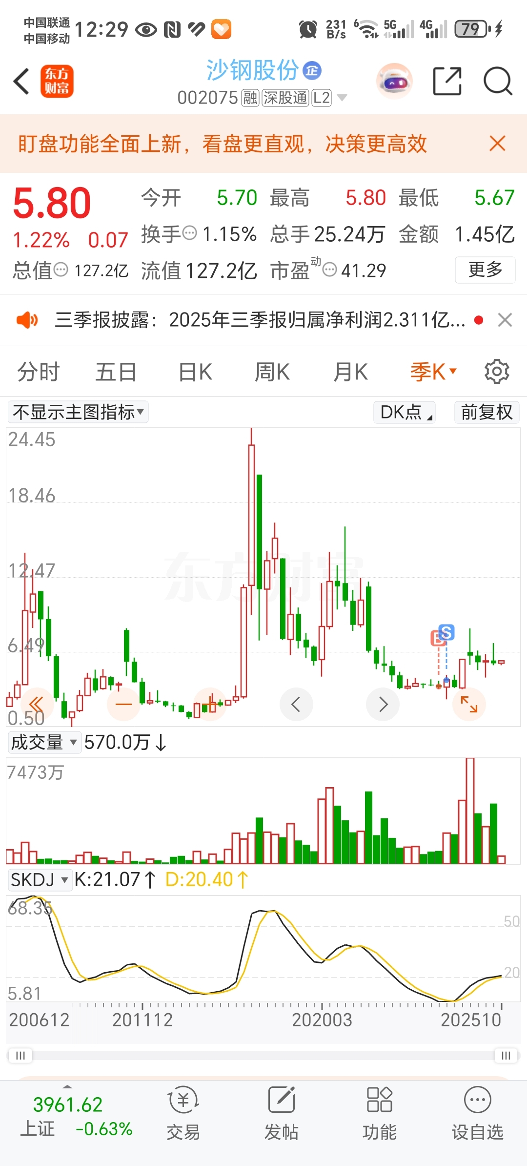 $抚顺特钢(SH600399)$ 通过季线选的沙钢,当时无人问津,没有人看上,俺直接上车,赚了一点就卖了,如果不卖可以赚三倍