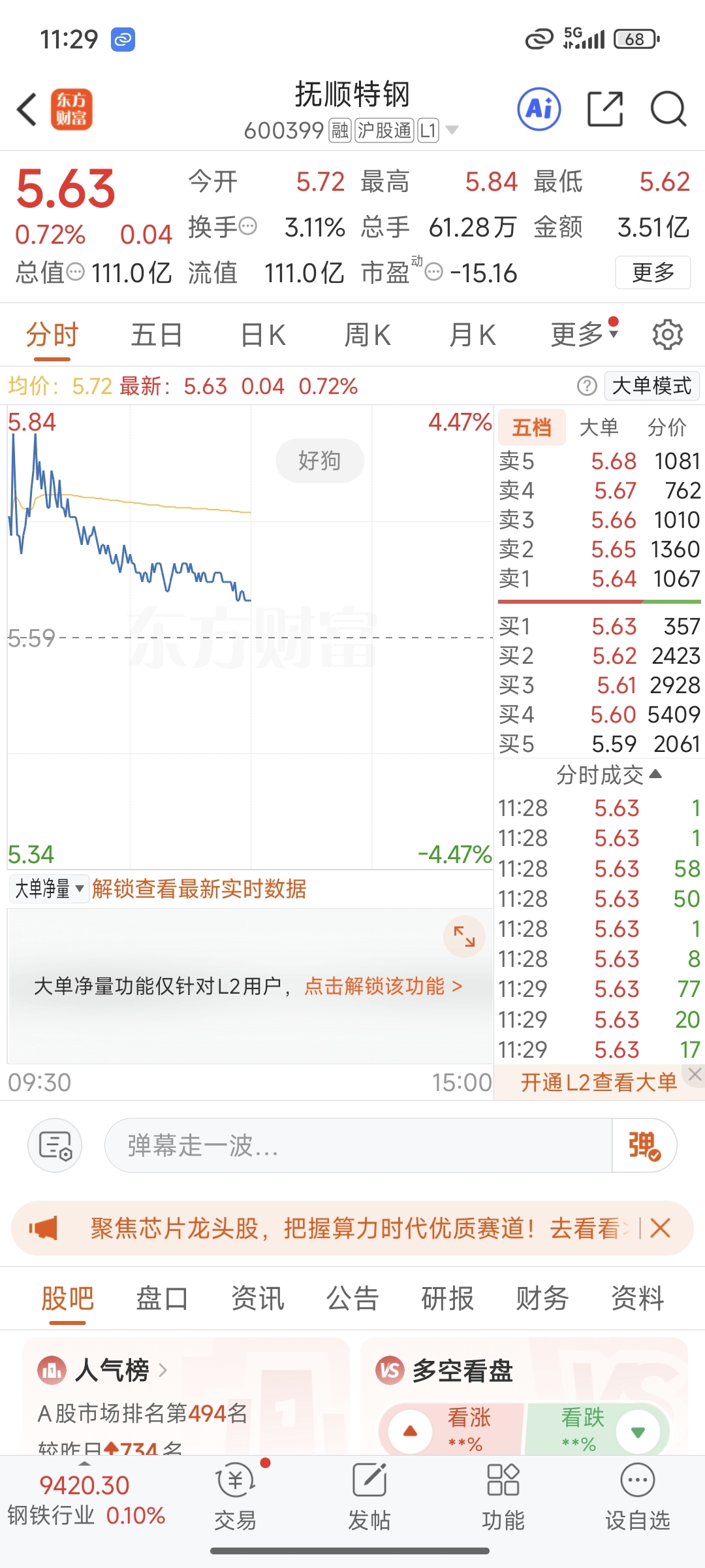 $抚顺特钢(SH600399)$ 缓慢下跌出货