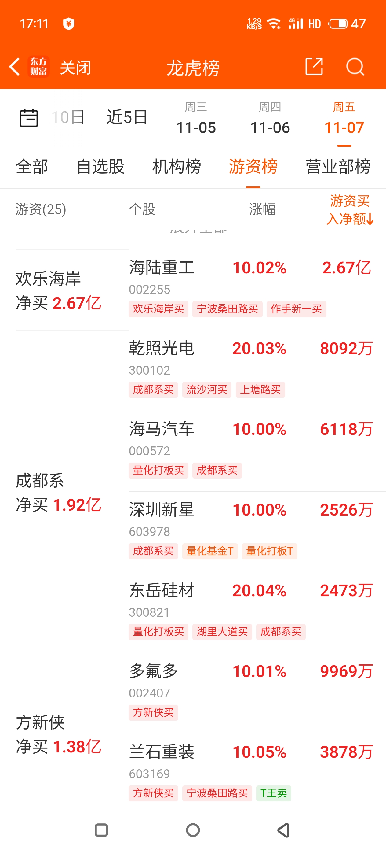 同样都是核反应堆风口大利好的票,其他几个都是连续涨停,海陆重工更是几个游资大佬好