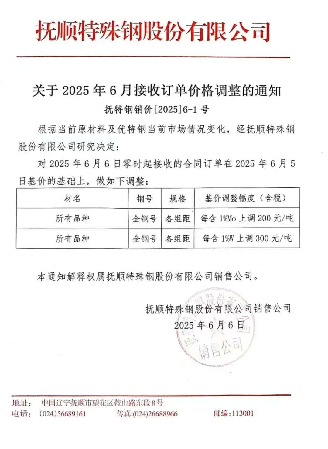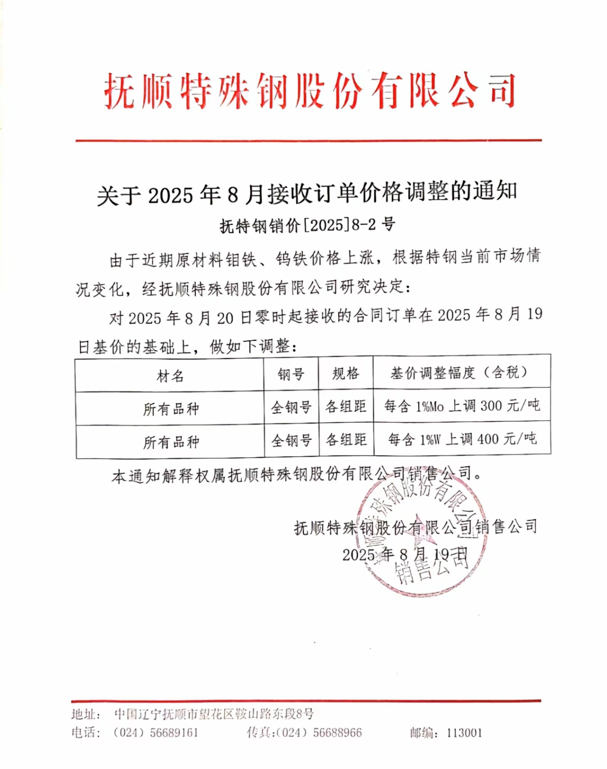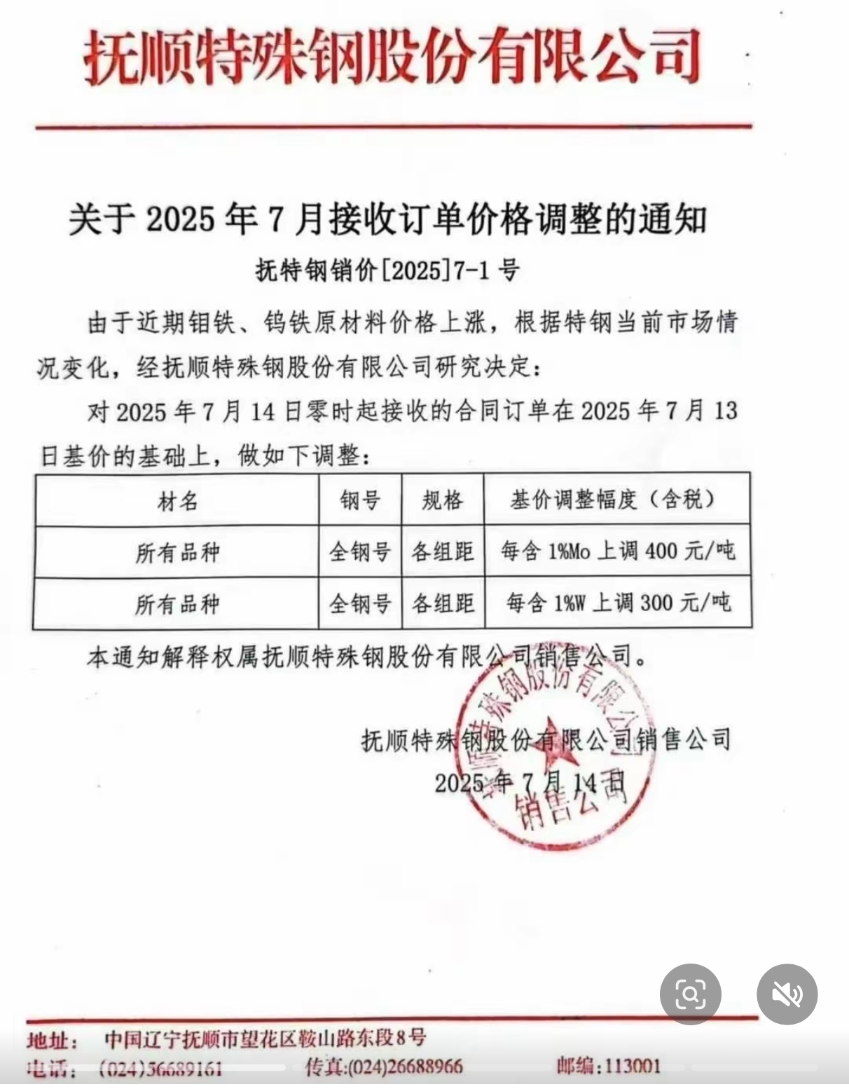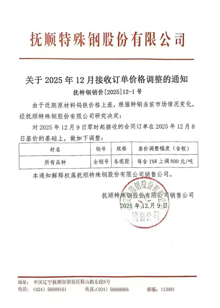 抚顺特钢产品涨价情况记录