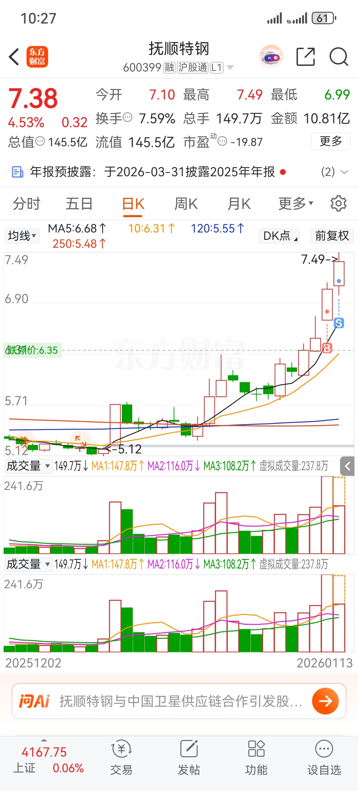$抚顺特钢(SH600399)$ 一大早又卖飞了。。。