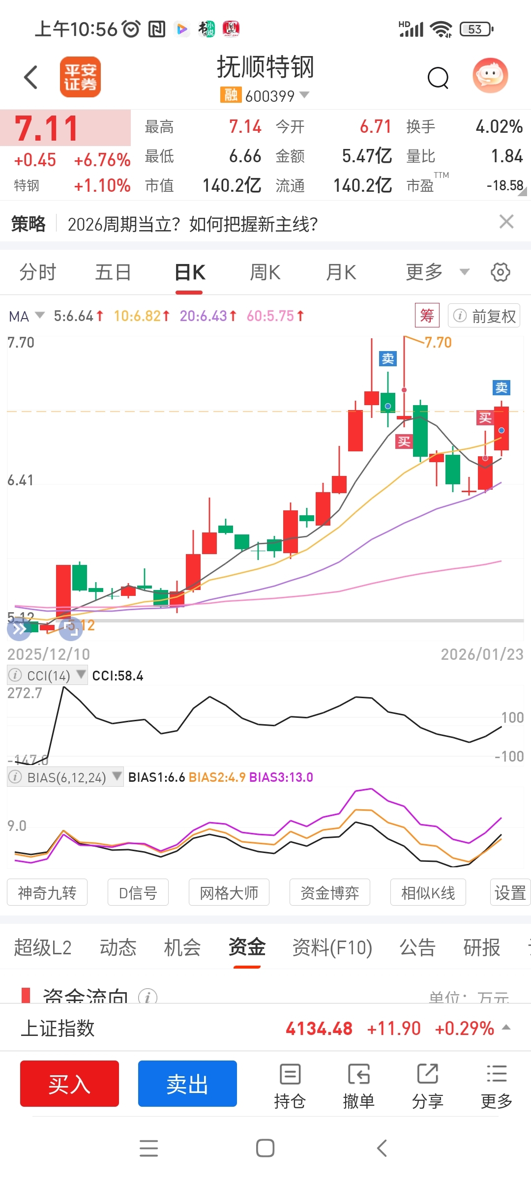 $抚顺特钢(SH600399)$ 6.88卖飞了