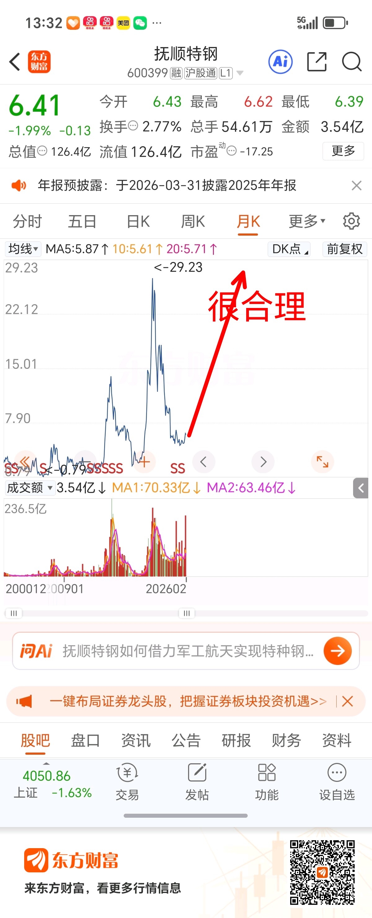 $抚顺特钢(SH600399)$ A股选股,宁有种乎。抚顺特钢,已经走出低点第一波段50%涨幅。大周期可期