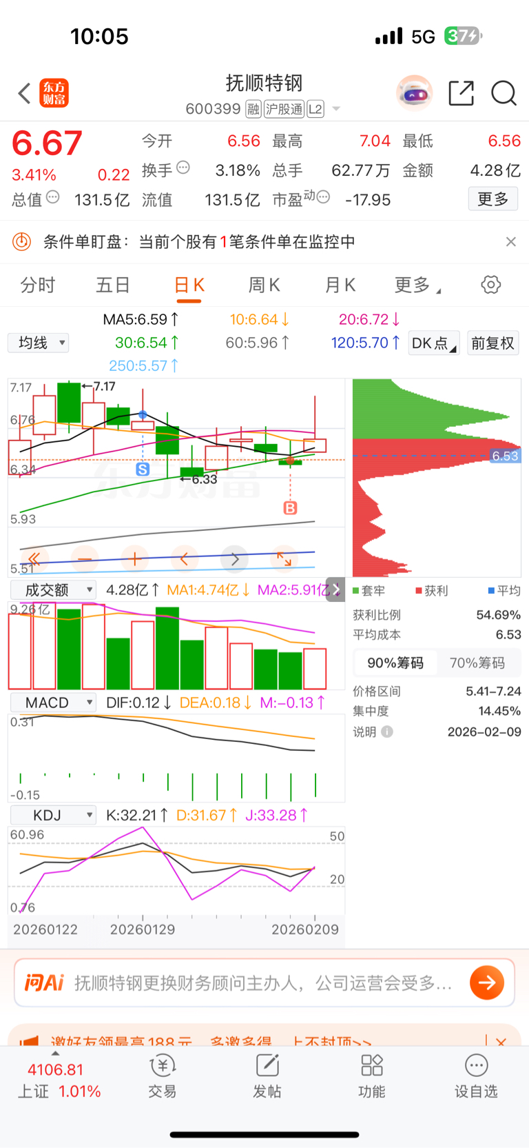 $抚顺特钢(SH600399)$ 阿西吧!