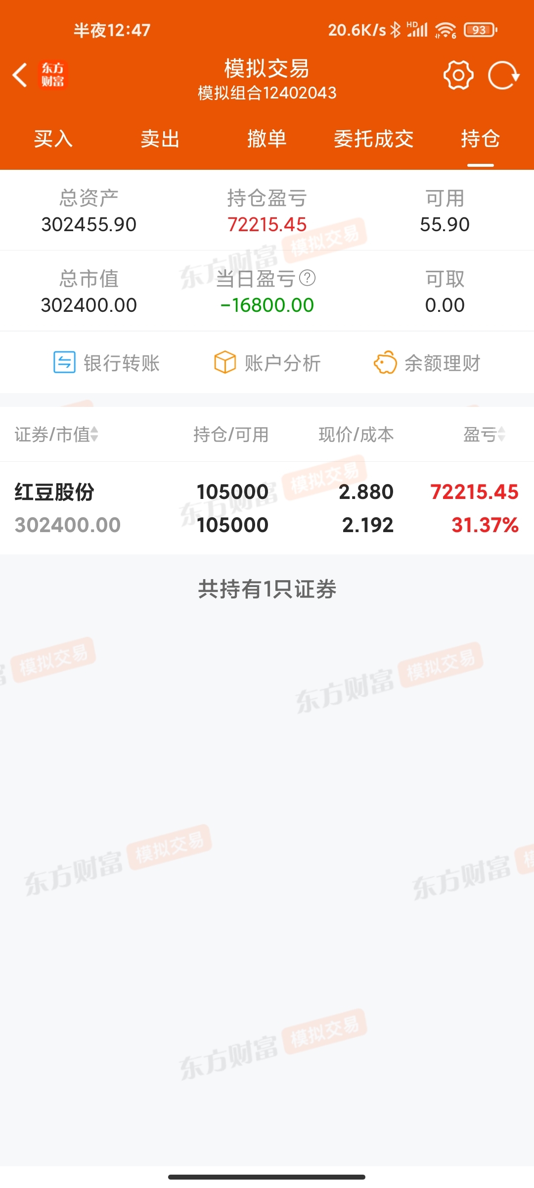 盈利还有30多个点,不怕他跌,等到9.9出货