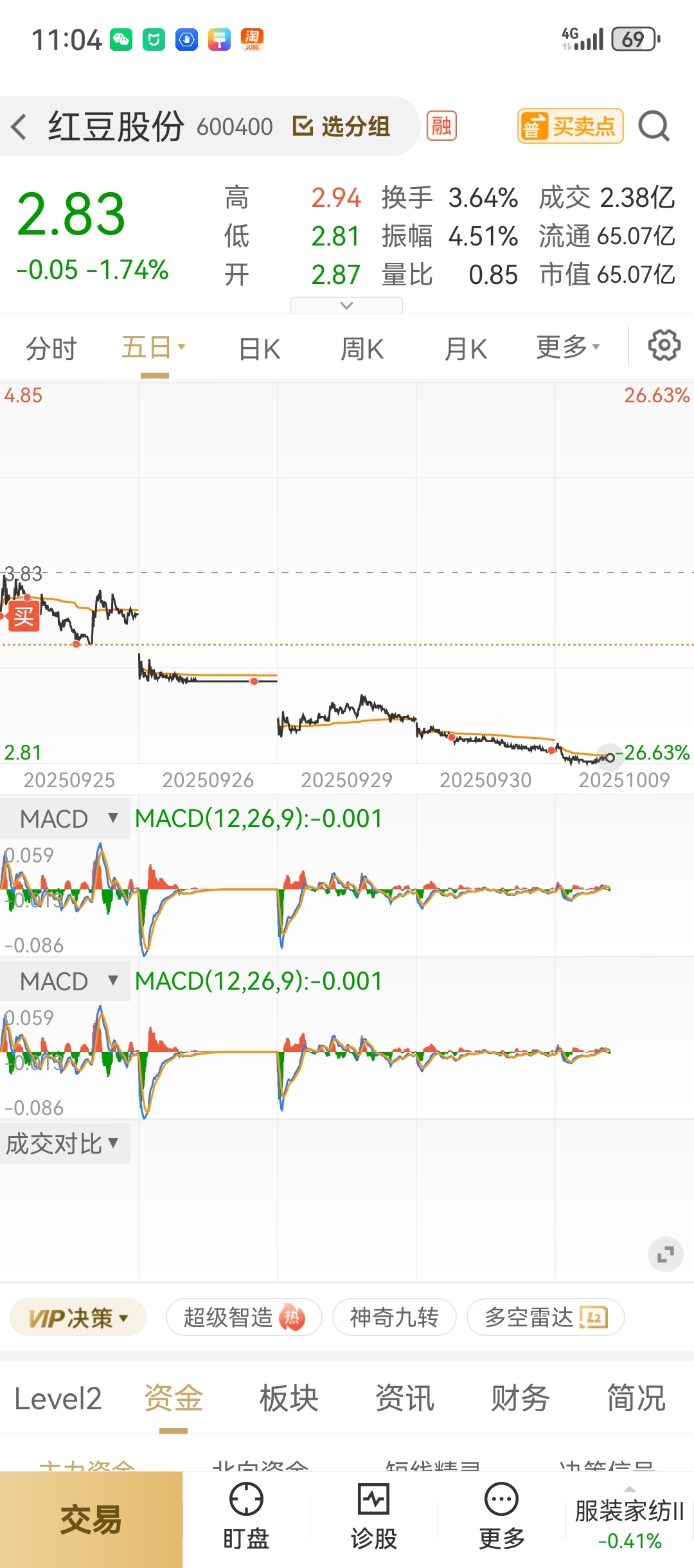 $红豆股份(SH600400)$ 我认了,一路买买买,还是绿,钱也完了,