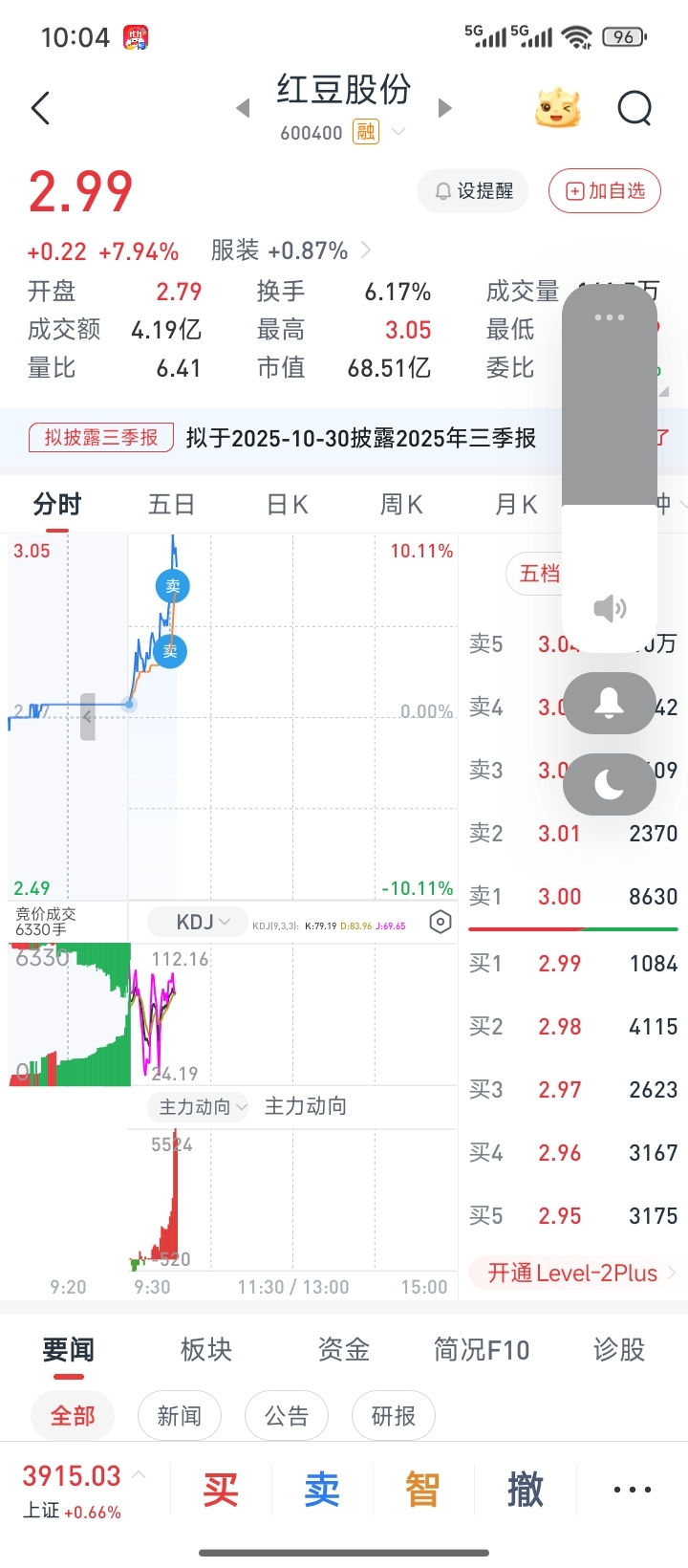 $红豆股份(SH600400)$ 3.05清了感谢主力给个台阶