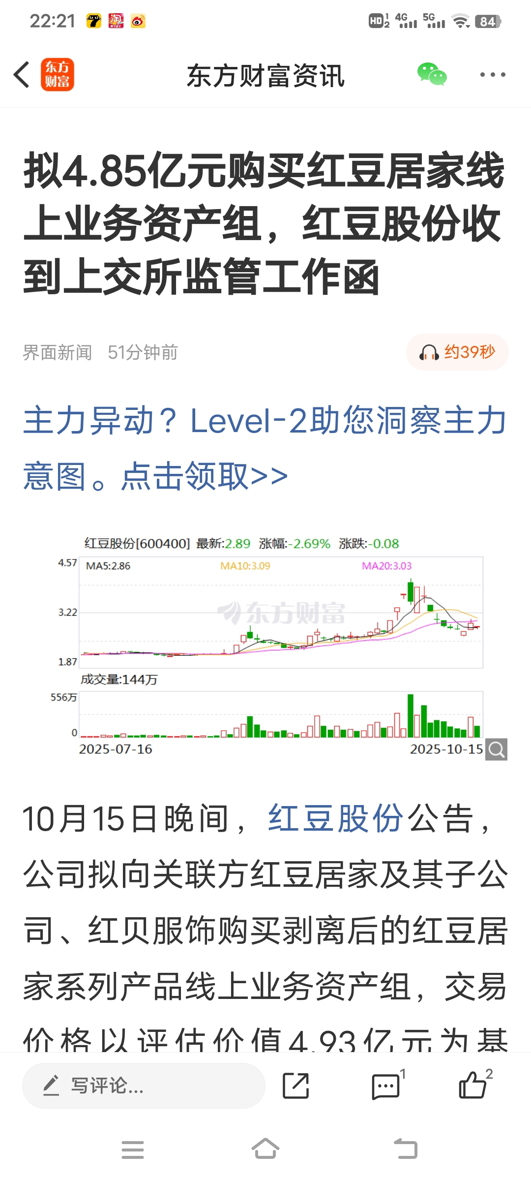 $红豆股份(SH600400)$ 收到上交所监管函?