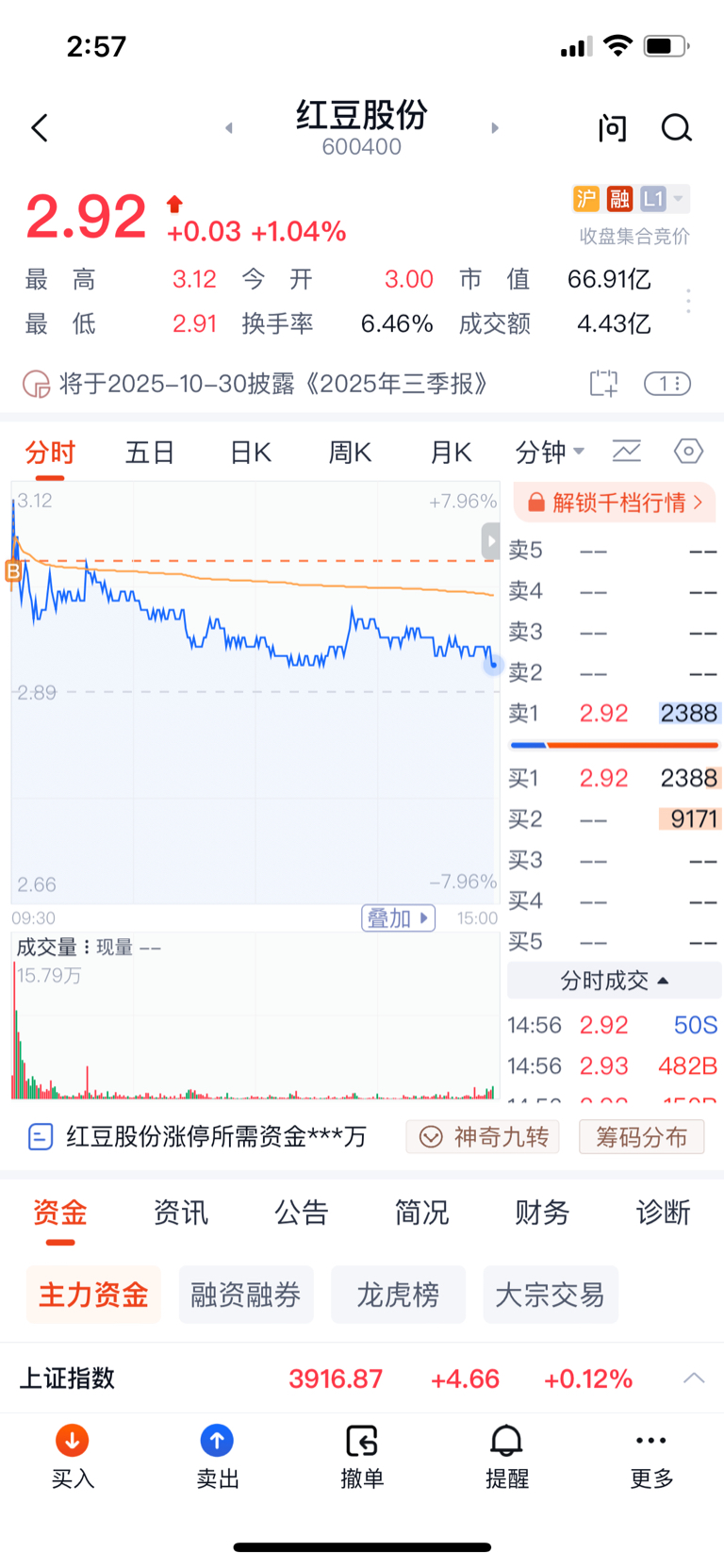 $红豆股份(SH600400)$ 已经是第三次杀我了。