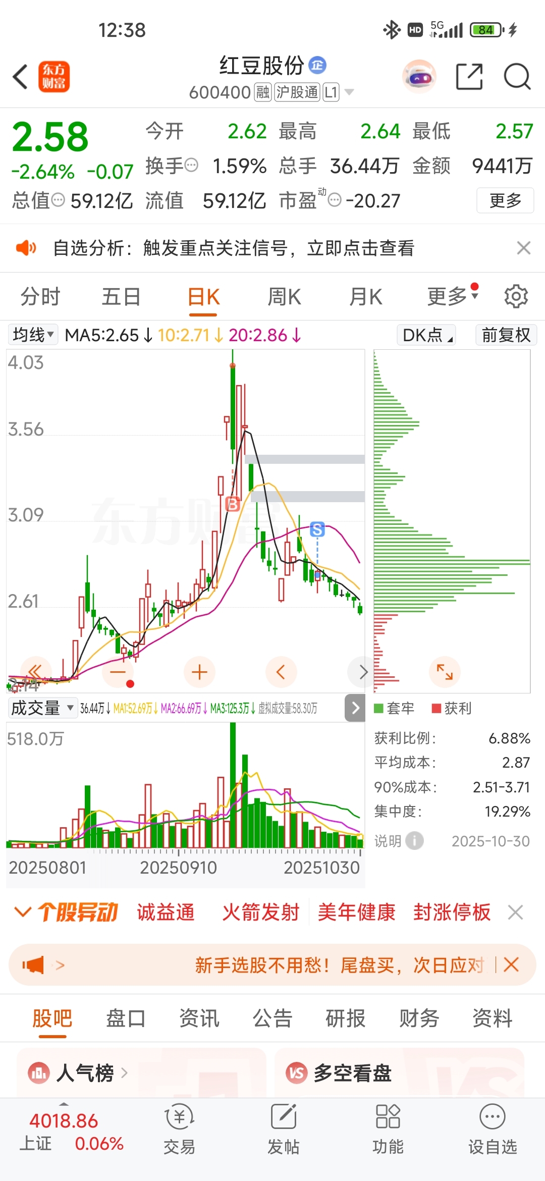 $红豆股份(SH600400)$ 还好跑了,受不了阴跌