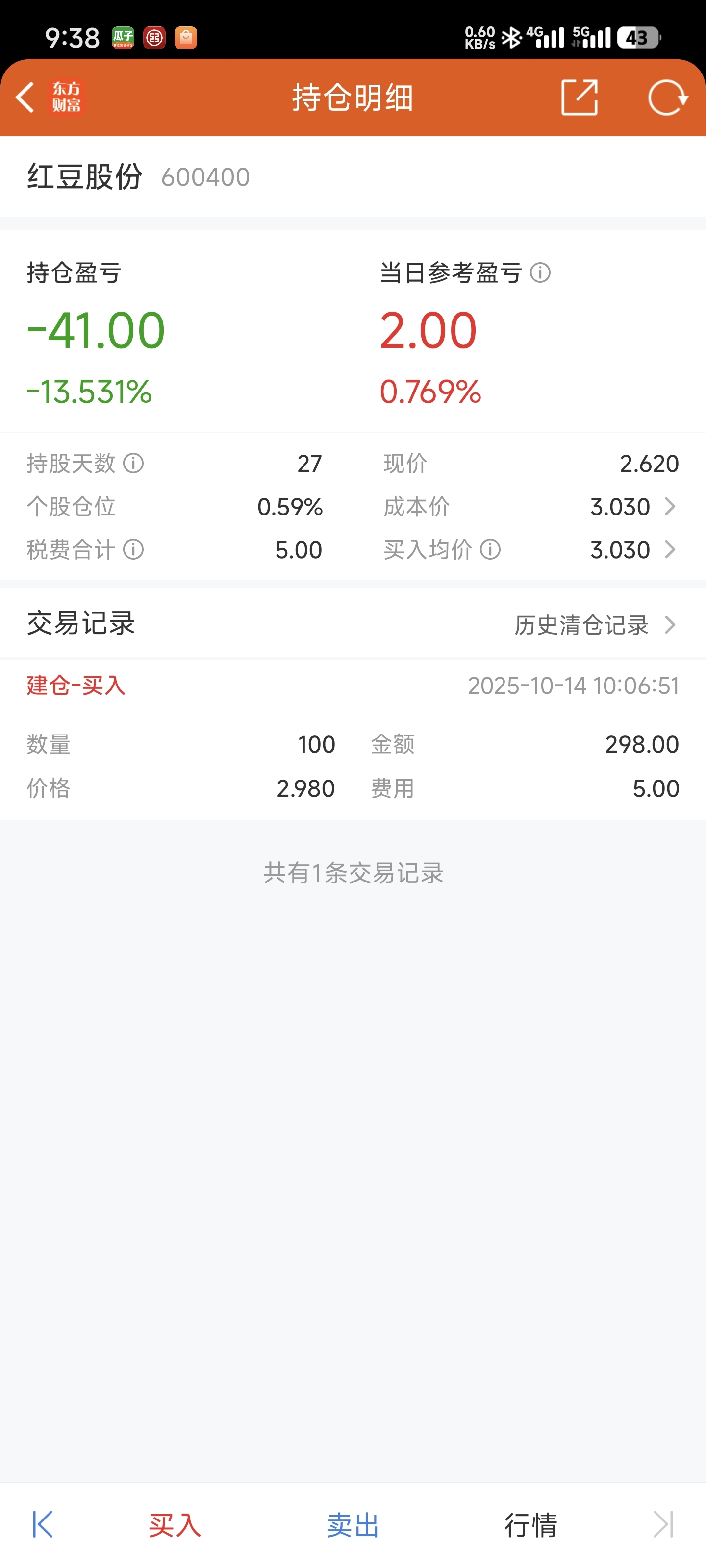 $红豆股份(SH600400)$ 难得啊!今天大概率红啊!