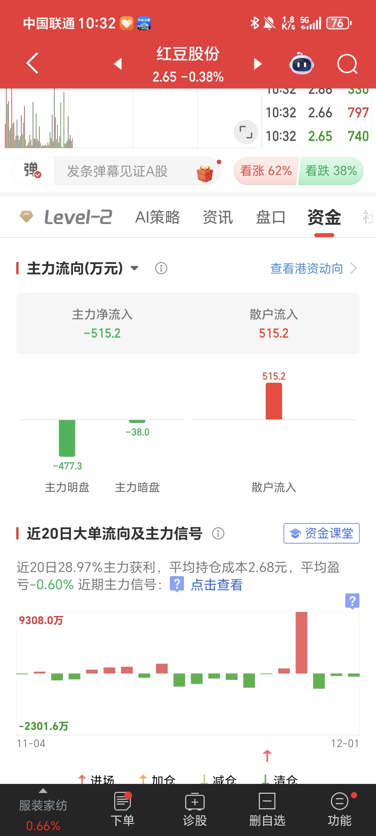 $红豆股份(SH600400)$ 全是散户再买,主力跑了,我特么也先走为敬,等放量了再来