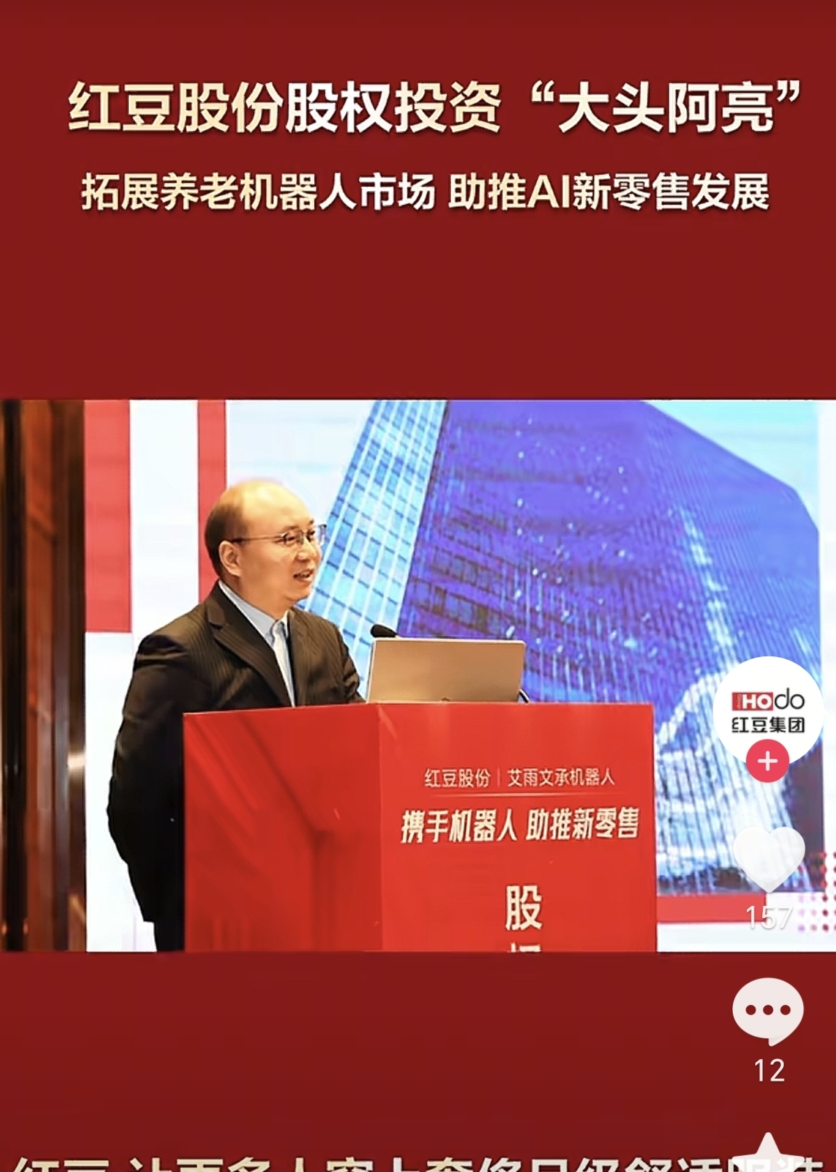 $红豆股份(SH600400)$ 大头阿亮养老机器人