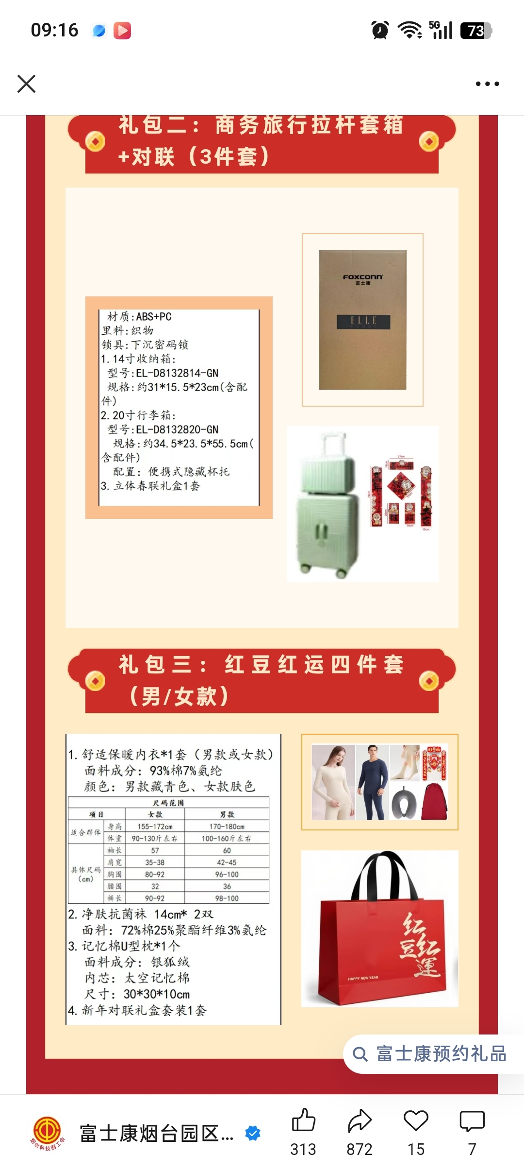 今年富士康的春节礼品有红豆保暖衣