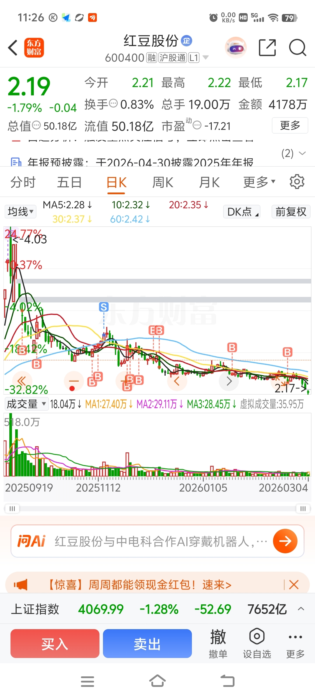 $红豆股份(SH600400)$ 追涨富三代抄底毁一生,切记不可抄底!!!!