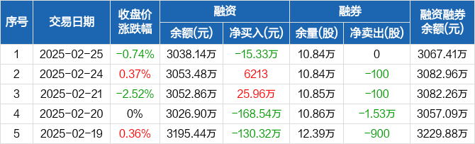 大有能源:融资净偿还15.33万元,融资余额3038.14万元(02-25)