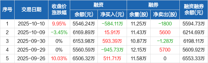 大有能源:融资净偿还584.11万元,融资余额5546.24万元(10-10)