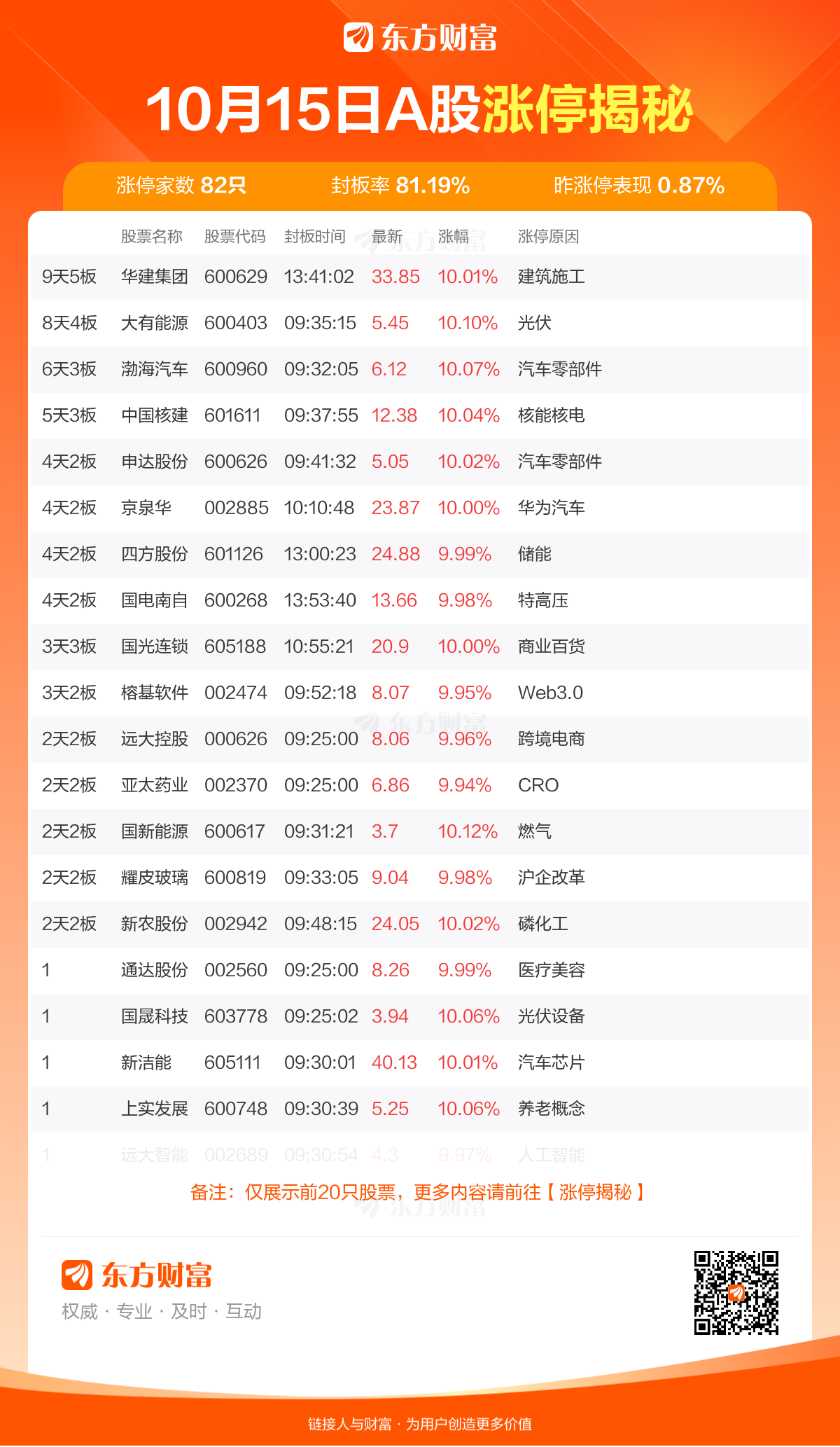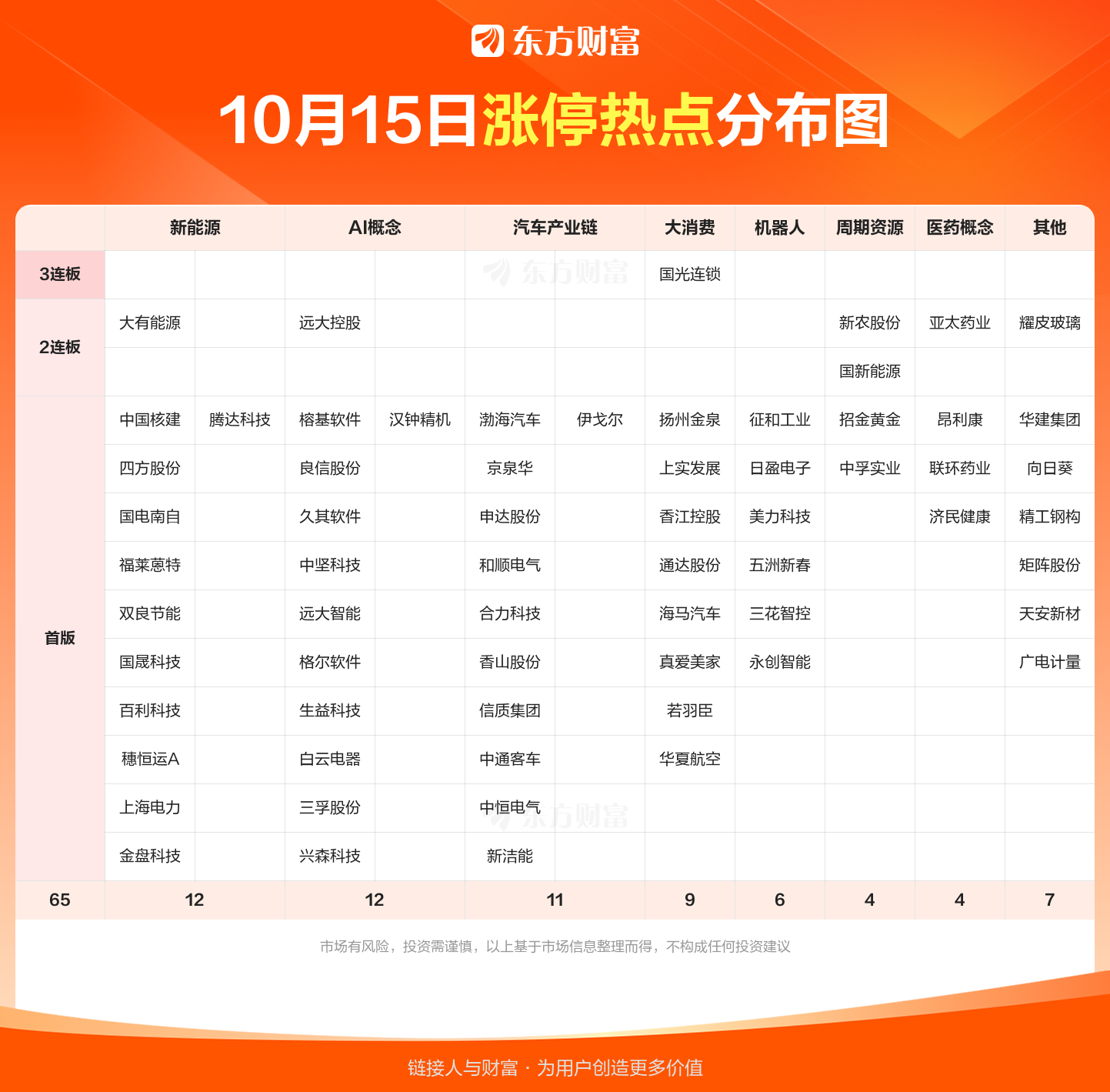 【可控核聚变】10月13日聚变堆主机关键系统综合研究设施“夸父”偏滤器原型部件通过验收;中核集团漳州核电2号机组启动核燃料装载。 【光伏产业】10月底或出台光伏产能治理文件,拟限制全产业链开工率并严禁新增产能。 【新凯来半导体】10月15-17日深圳湾芯展将揭晓本土半导体企业新凯来的技术突破。 【大消费】10月13日经济形势座谈会提出持续扩大内需,浙江加力推进消费转型升级。 【三季报预增】粤桂股份前三季扣非净利预增83%-105%,楚江新材预增1934%-2106%。 【低空经济】10月13日深圳发布2.0版低空经济标准体系建设指南。 【超硬材料】10月9日商务部对超硬材料实施出口管制,黄河旋风为国内龙头供应商。潜伏机会