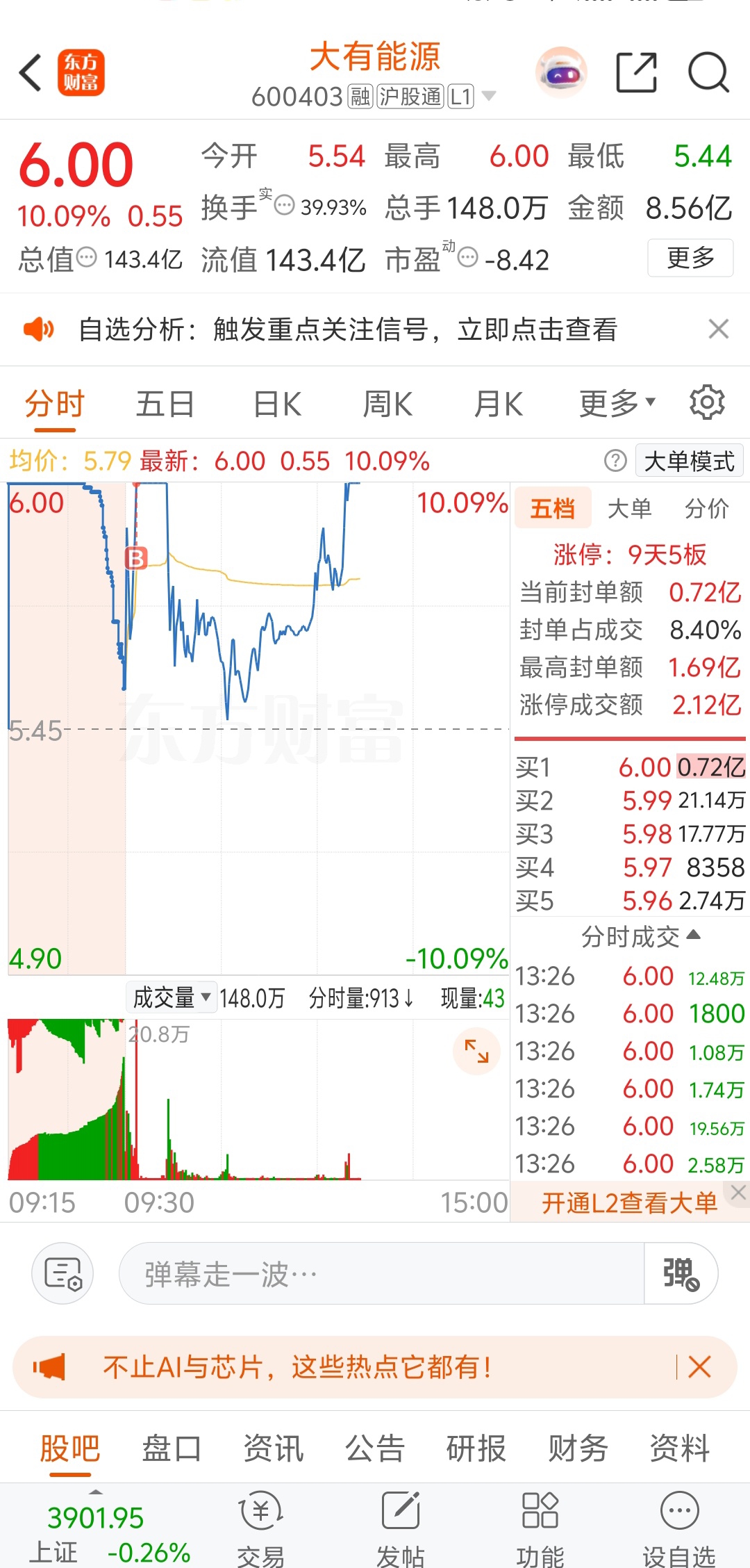 $大有能源(SH600403)$ 无量回封,很明显是出货,真是够诱惑的,明天自求多福吧