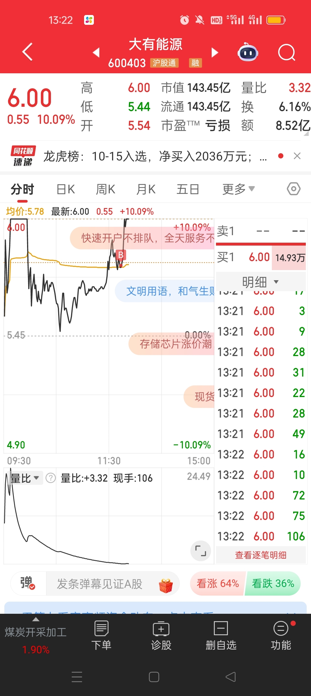 $大有能源(SH600403)$ 重操旧业,本人擅长低吸反核打板高吸趋势各种手法