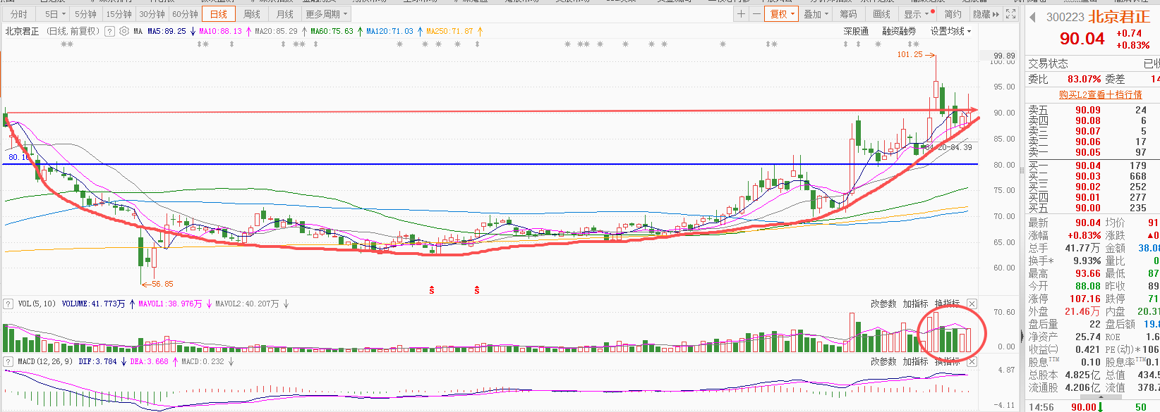 当然涨多了,或有非常的跟风盘盘,出现调整也在情理之中。这三天它的振幅达15%。昨日缩量震荡,短期10日和20日均线会快速跟上,后续稍微给量,再次出中大阳线的概率会偏大。如还会宽幅调整,可适当进行低吸或低T。