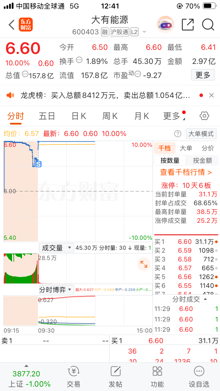 设置了5.98自动卖出单居然是最后悔的决定,想不到今天这么超预期!也不知道炒什么