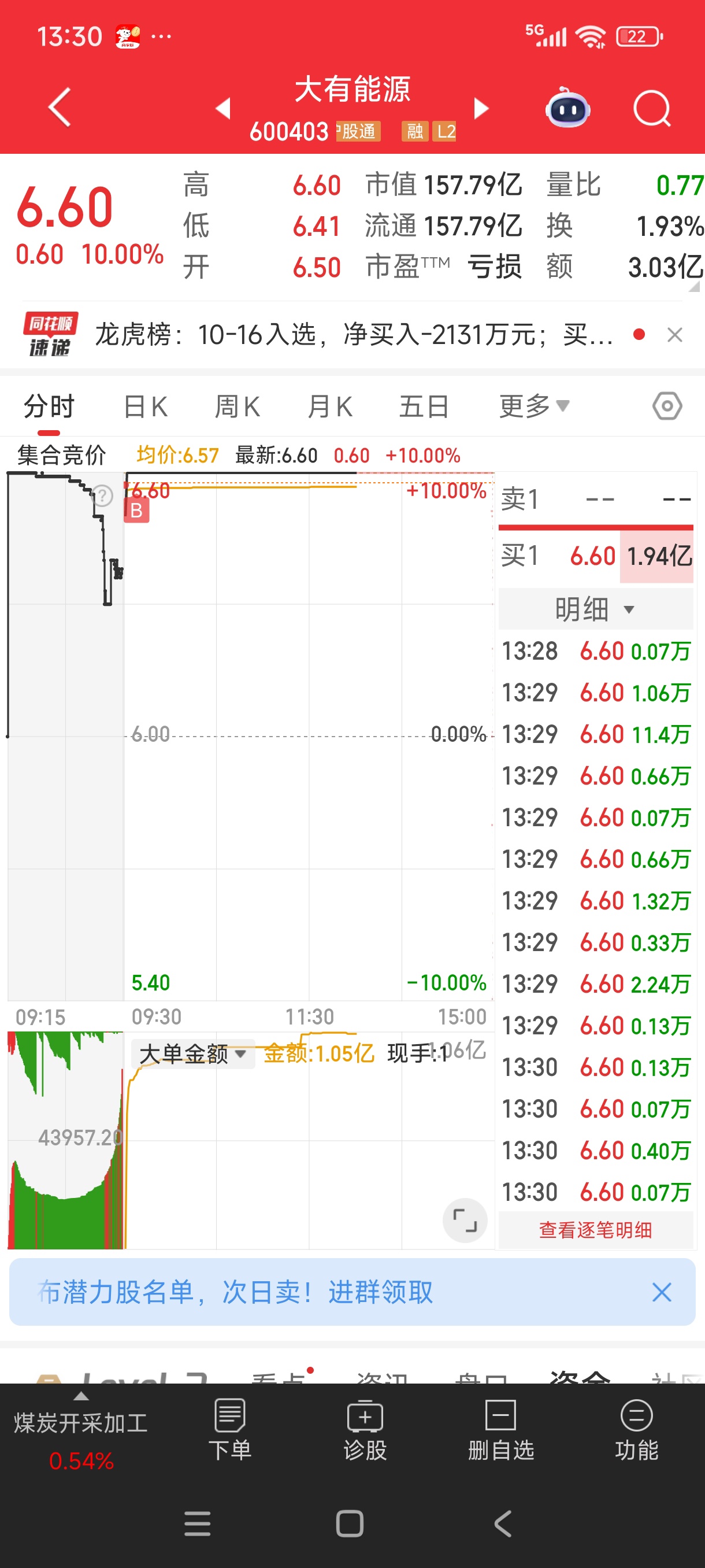 $大有能源(SH600403)$ 本座早盘竞价以重仓杀入!兄弟们一起发财!