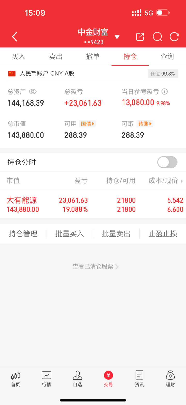 五万实盘的第93天(10月17日),不到五百万,不停更。记录个人成长,验证个人实力,欢迎打假,绝对实盘。目前144168元。$大有能源(SH600403)$ 秒板,今天不动如山。当天满仓涨停。#复盘记录# #炒股日记# #实盘记录# #收盘点评# #强势机会#