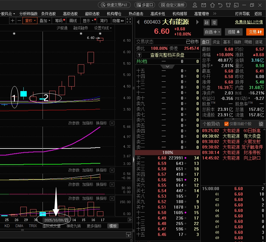 单阳突破交易系统:1单阳突破添加自选(可跟踪的参考信号)2股价缩量会抽寻找机会(