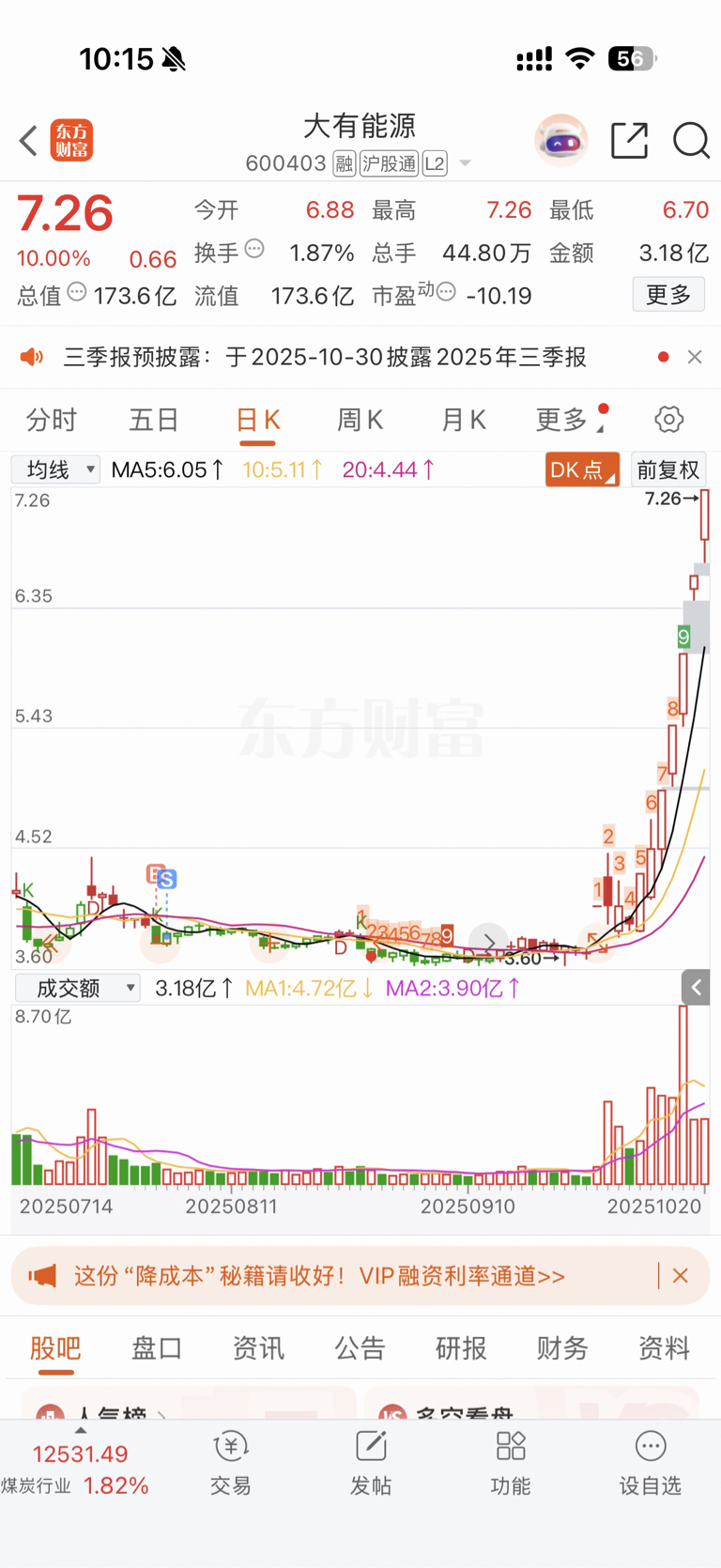 $大有能源(SH600403)$ 眼睁睁看着你一步步登天啊