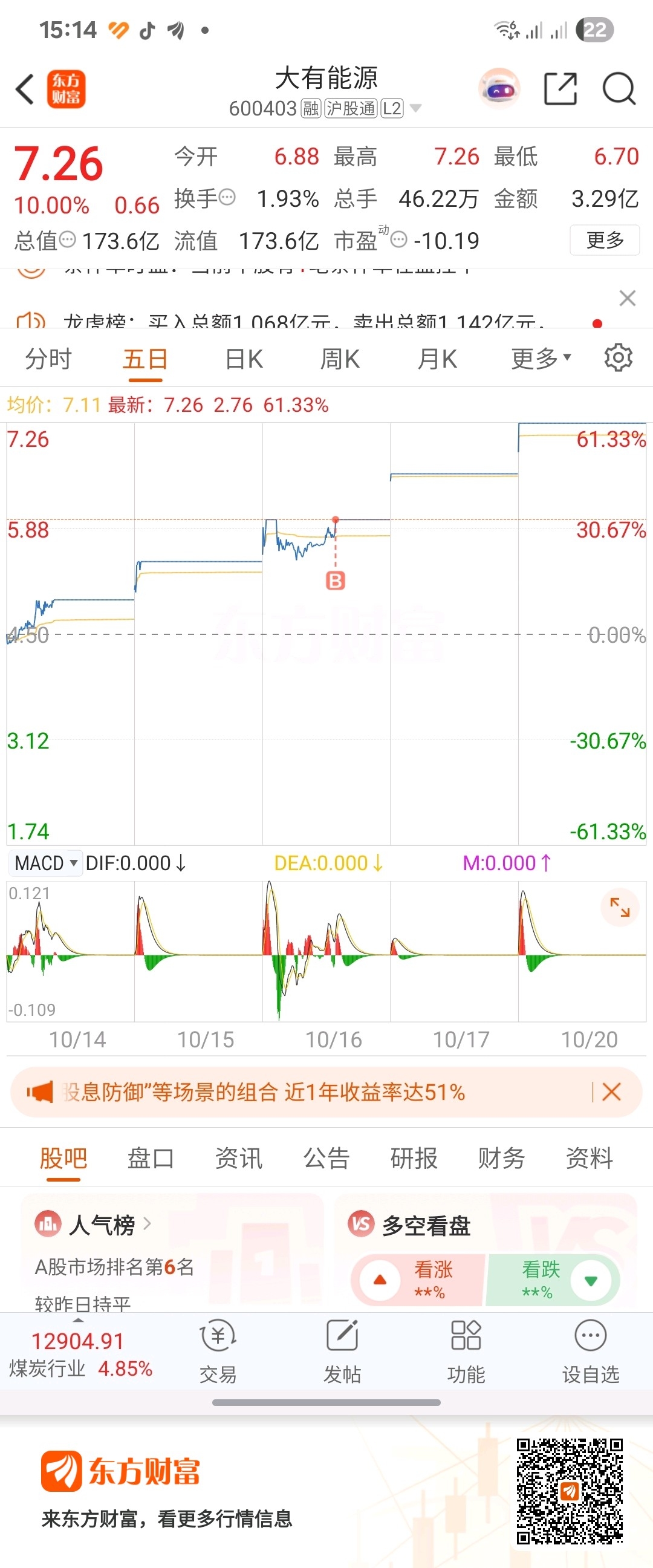 $大有能源(SH600403)$ 弱转强的买点,明天再加速就真要卖了,太一致了。明天拿个溢价再走