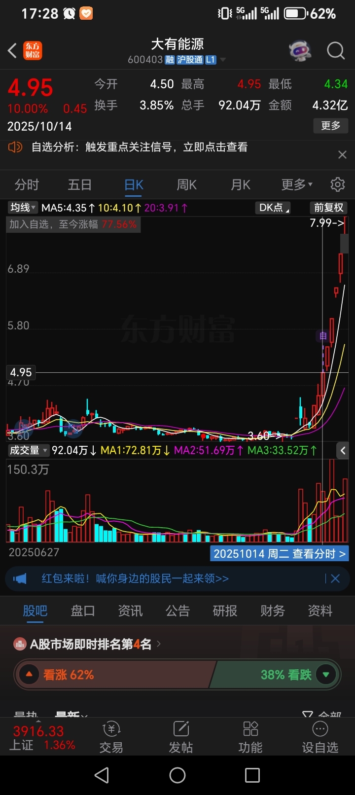 $大有能源(SH600403)$ 自选天天看着不敢买