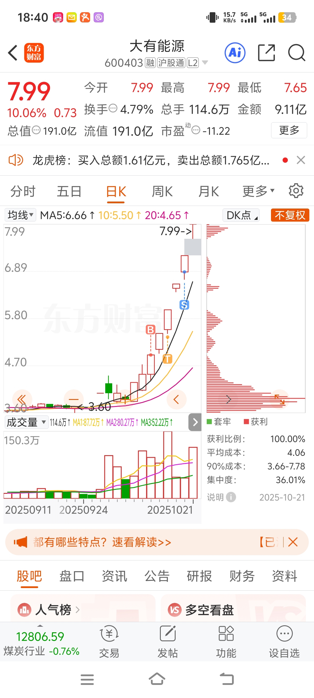 $大有能源(SH600403)$ 卖早了,我是韭菜命,只赚了几十个点,一直拿着可以翻倍的,现在只剩下底仓了!