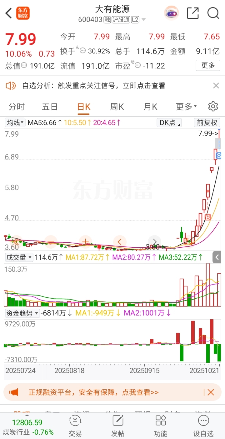 $大有能源(SH600403)$ 拿不住了,留下的发财