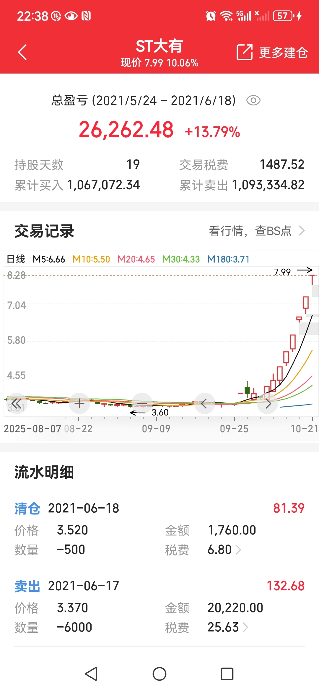 $大有能源(SH600403)$ 2021业绩巨好,摘帽前后一直在三元多织布,如今亏到姥姥家了能涨成这样,刷新我的认知。我对这个票是有感情的,从2019年开始就多次买入,去年8月如果不是业绩太烂2.2元一定会买,看到巨亏两年才删了自选,再次相见看的头晕目眩,高不可攀。这股票市场的马内真跟纸一样,庄太任性,我的认知太肤浅。