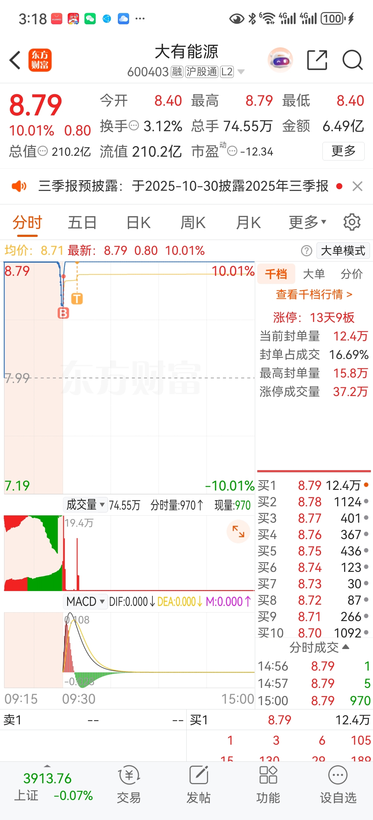 $大有能源(SH600403)$ 有没有给我这个今天的骚操作点赞的吗?手续赔光了
