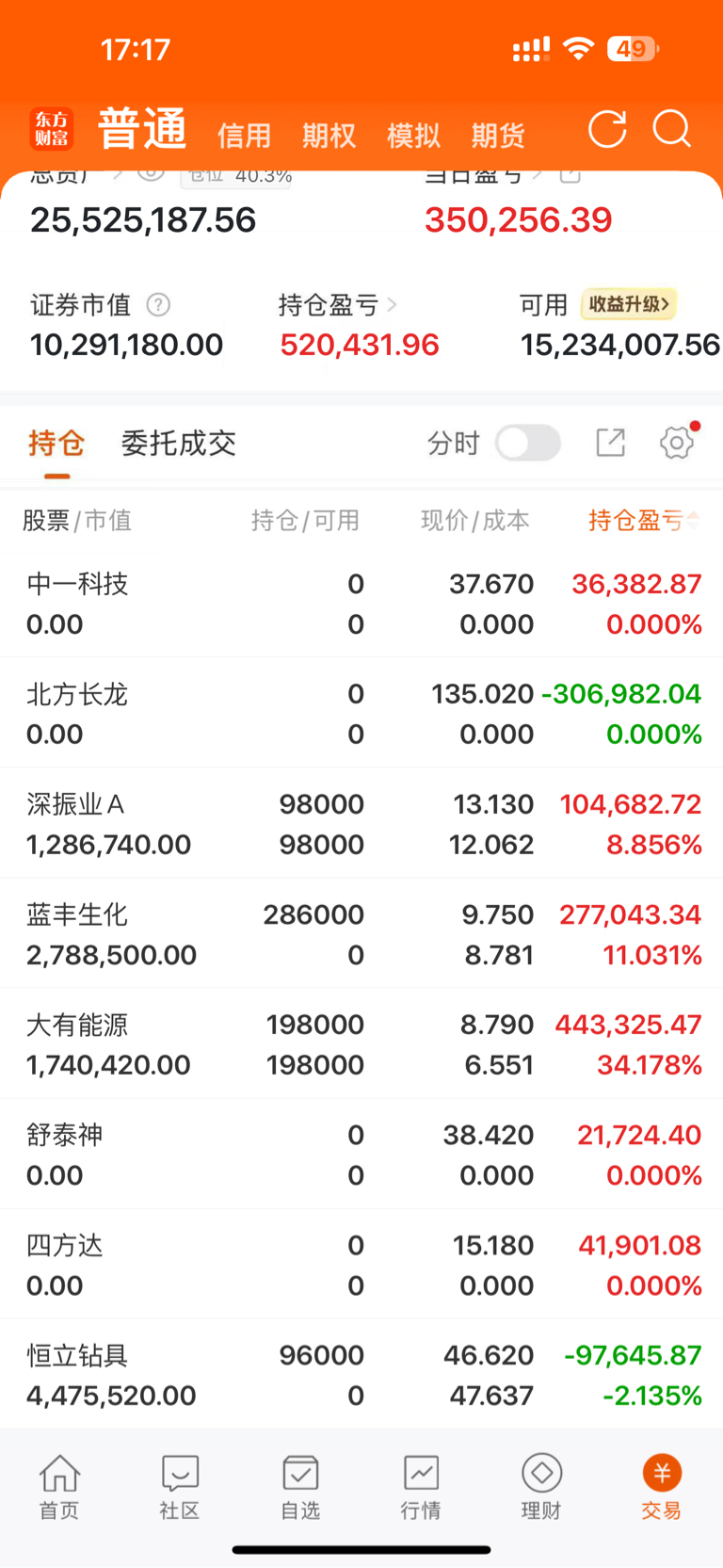 目前持仓情况:深振业A、蓝丰生化、大有能源、恒立钻具