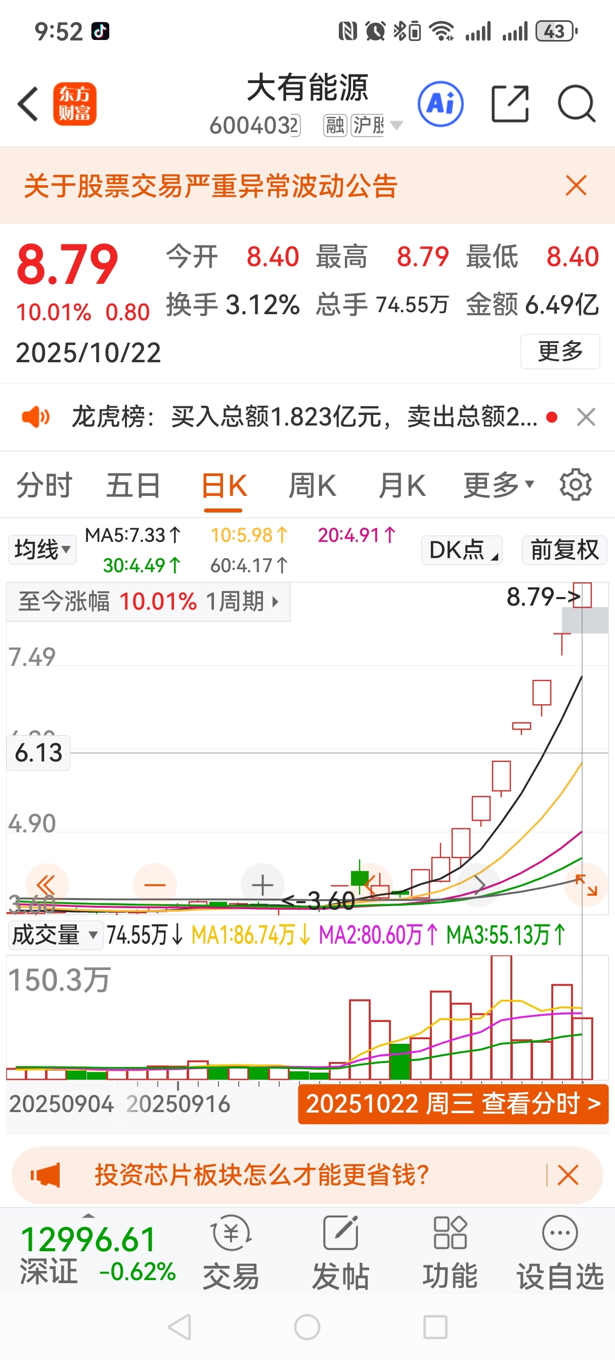 $大有能源(SH600403)$ 明天最好高开7点以上秒板,或者一字板缩量不能放量。如果明天是放量板或者是烂板。就要小心!