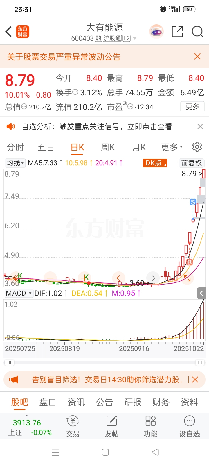 $大有能源(SH600403)$ 进去喝一口汤就跑,不敢吃肉,怕怕