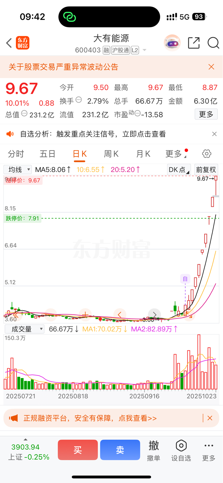 $大有能源(SH600403)$ 无话可说,错过一个亿!!!!