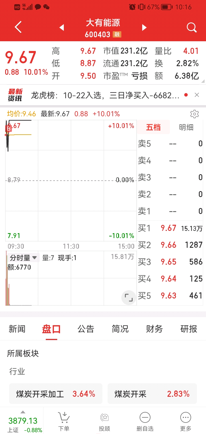 $大有能源(SH600403)$ 今天开盘总给了加仓机会,但是加高了,回落下来正准备再加,结果又拉涨停了,而且煤炭板块集体涨停反包,,,搞笑了