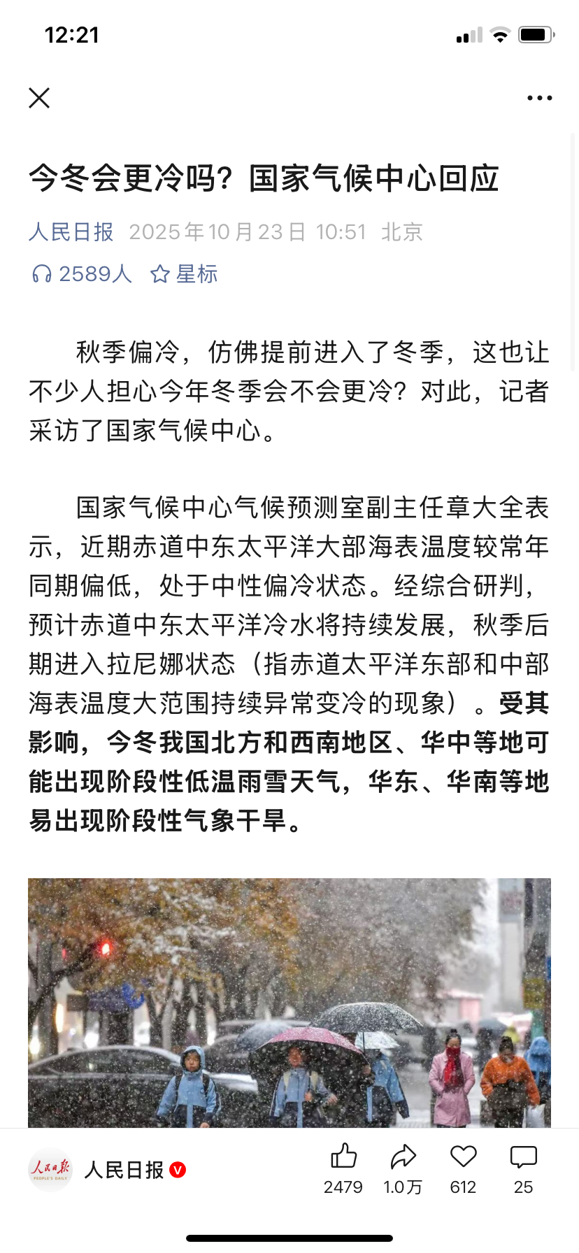 人民日报发文,今年冬天相对以往更冷,买不到的兄弟明天一早上挂涨停板吧