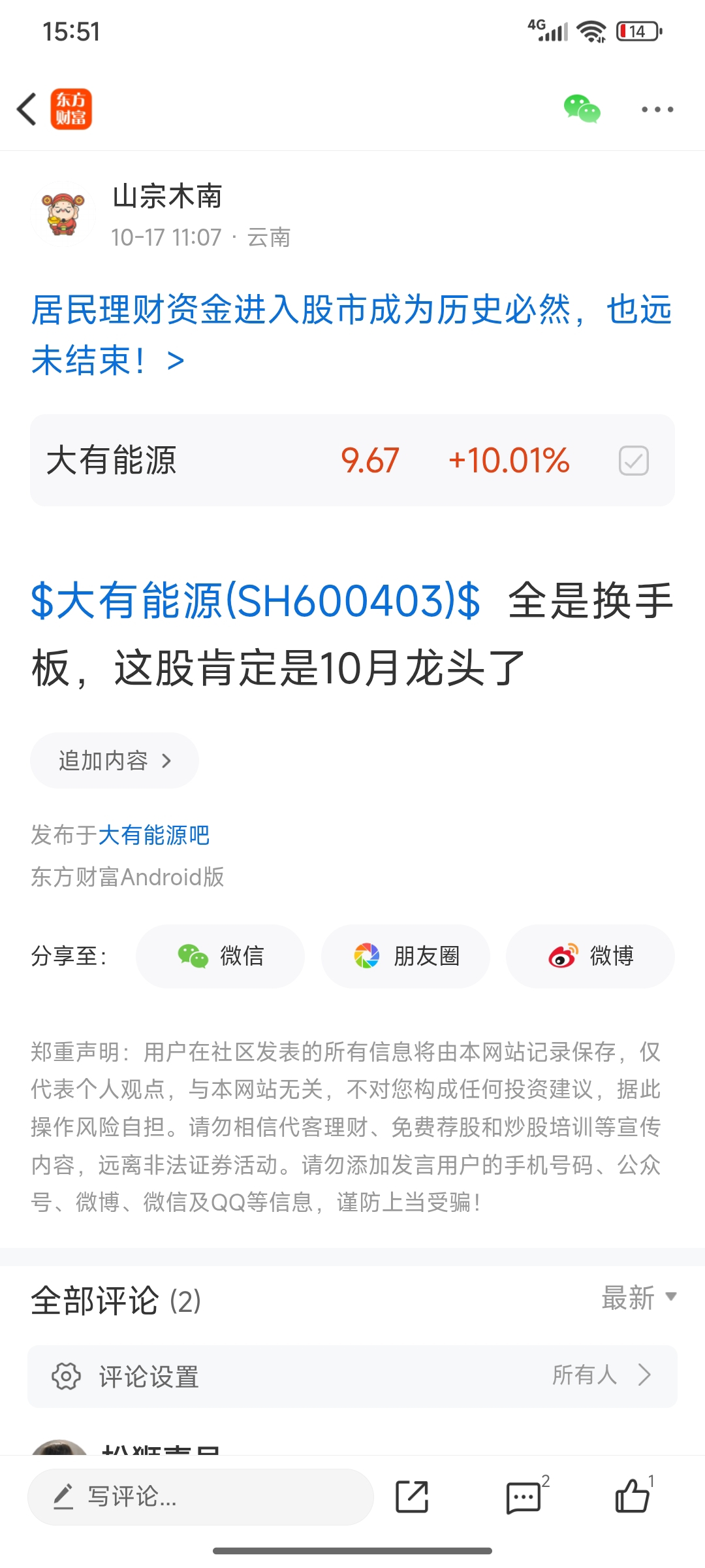 温馨提示: 1.根据《证券法》规定,禁止编造、传播虚假信息或者误导性信息,扰乱证券市场;2.用户在本社区发表的所有资料、言论等仅代表个人观点,与本网站立场无关,不对您构成任何投资建议。用户应基于自己的独立判断,自行决定证券投资并承担相应风险。《东方财富社区管理规定》