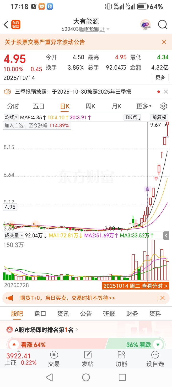 $大有能源(SH600403)$ 自选天天看着真服了自己