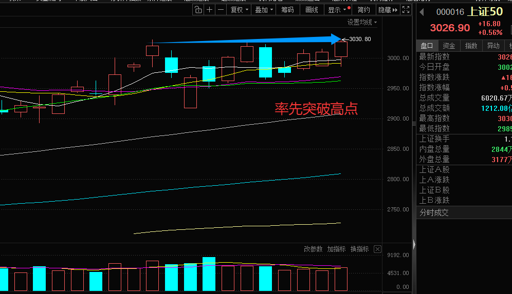 昨日市场探底回升,三大指数全线收红。但沪深两市成交额1.64万亿,较上一个交易日缩量239亿。全天都是轮动状态,从几大指数来说,目前大块头的代表沪深300,上证50反而更强,这里老K大胆预言如果指数突破,可能是上证50的成分股来带动,这是大家需要转变思路的地方。