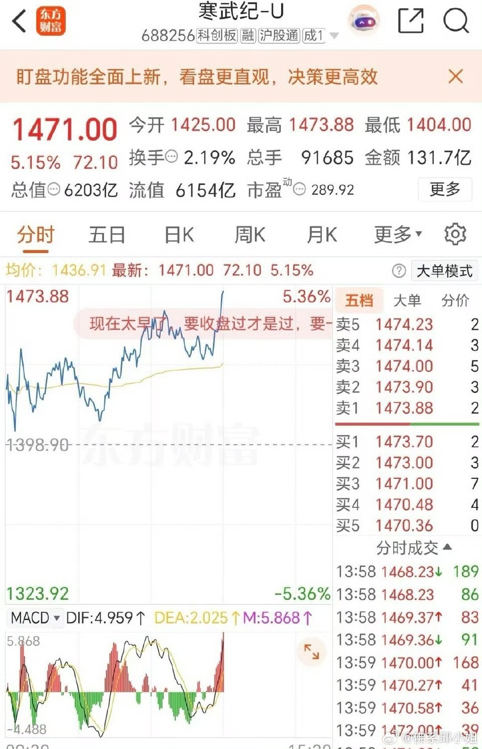寒武纪,高盛目标价2104元!跌不下来的,又带领大盘创新高!这就是新登股的新生的