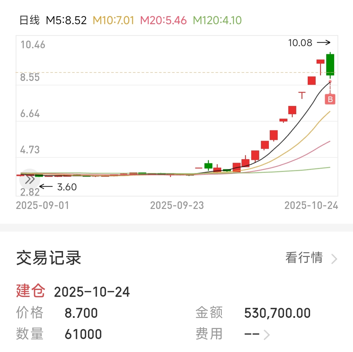 今日:大有能源(地板进)昨日:新莱应材(今日最高7个点)模式内低吸介入,4个点以