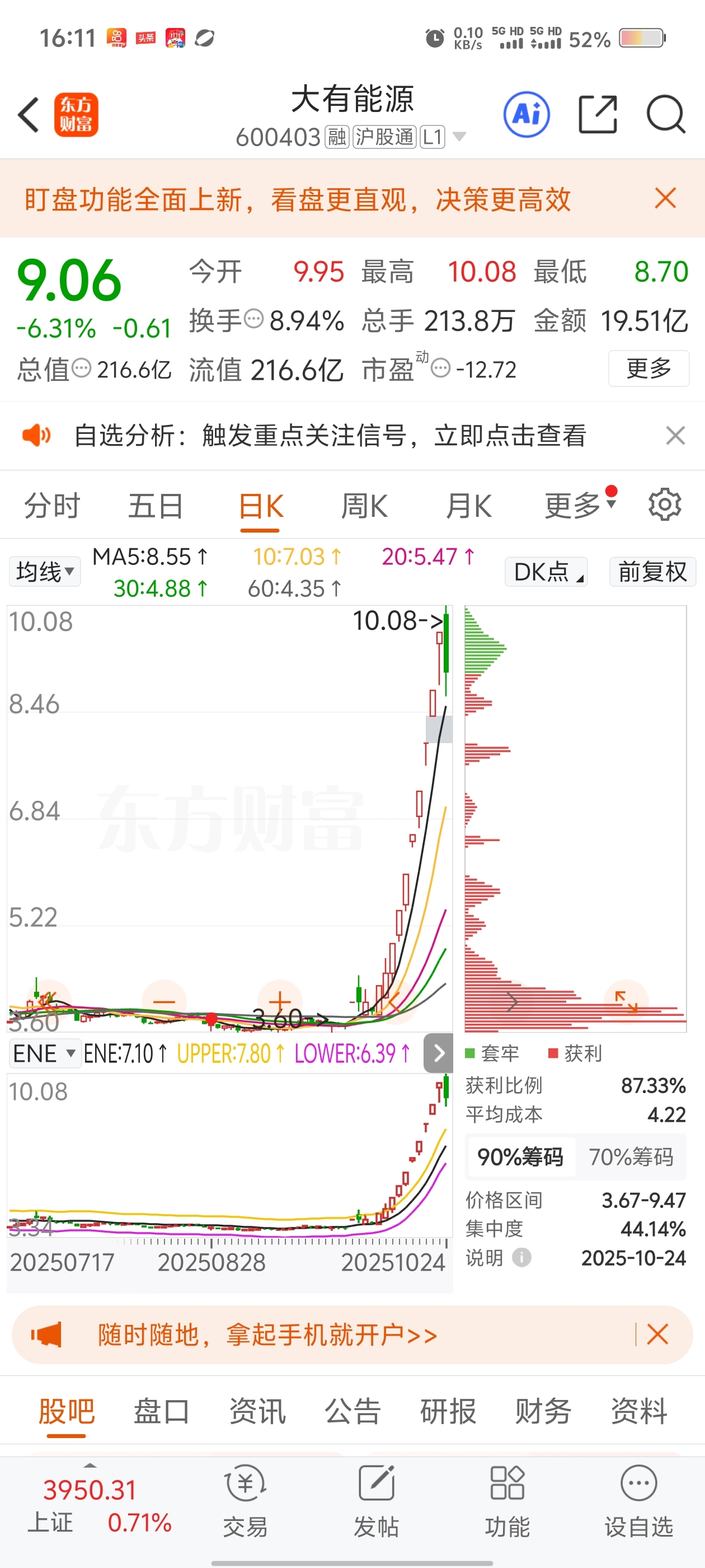 $大有能源(SH600403)$ 底部筹码纹丝未动,下周看新高