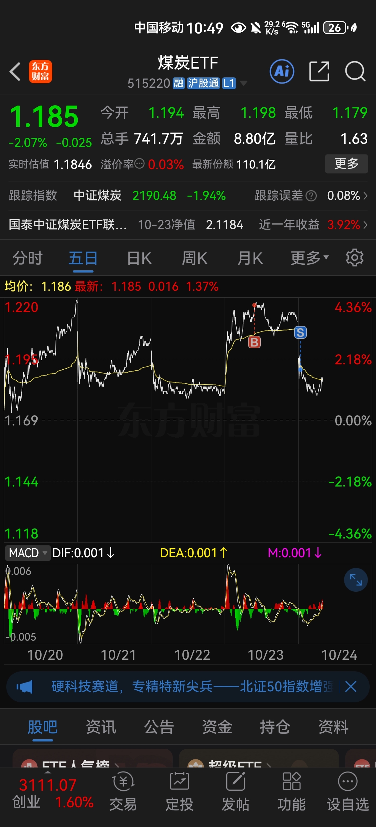 知道为什么一字跌停核按钮了吗?因为一大堆散户买入了,煤炭主力看到韭菜够了直接核按钮,当然大盘该涨了科技芯片半导体人工智能又开始了今天脑子不好了追涨杀跌了本来盈利5个点搞成赚1个点。草