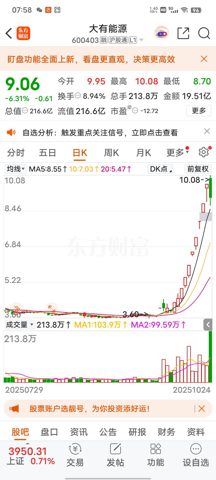 $大有能源(SH600403)$ 最高板8板
